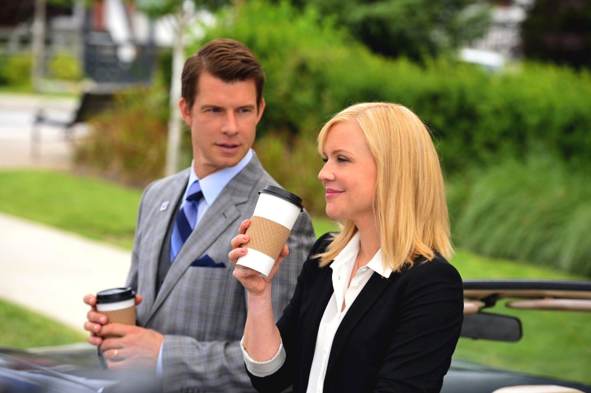 A Scene from Martha Williamson’s Signed, Sealed, Delivered featuring Eric Mabius as Oliver and Kristin Booth as Shane
